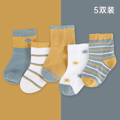 班杰威尔 5双装婴儿袜子春秋中筒袜 姜黄条纹