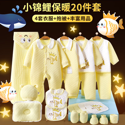 班杰威尔 新生儿礼盒婴儿衣服用品套装 66cm 加厚小锦鲤黄