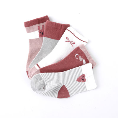 班杰威尔 5双装婴儿袜子春秋中筒袜 皮粉兔