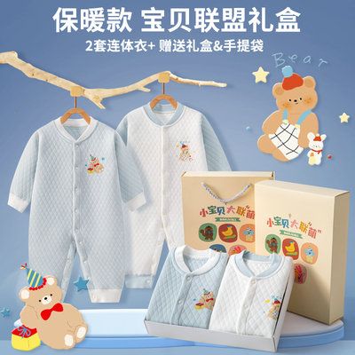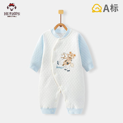 班杰威尔 加厚款秋冬装夹棉婴儿衣服宝宝连体衣 80cm 御马熊