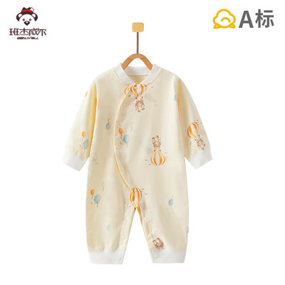 班杰威尔 四季婴儿连体衣春秋季斜扣纯棉无骨宝宝哈衣 73cm 小熊鸭米