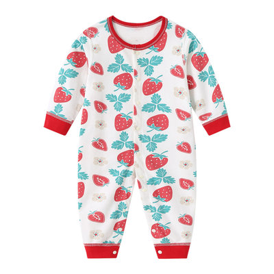 班杰威尔 四季婴儿连体衣春秋季对开纯棉无骨宝宝哈衣 59cm 甜草莓