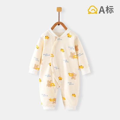 班杰威尔 四季婴儿连体衣春秋季斜扣纯棉无骨宝宝哈衣 66cm 小熊鸭米