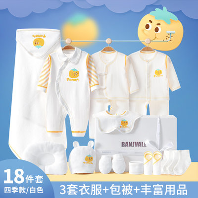 班杰威尔 新生儿礼盒婴儿衣服用品套装 66cm 四季白色黄番茄B