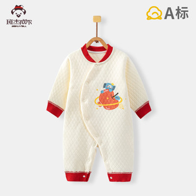 班杰威尔 婴儿连体衣新生儿宝宝棉服夹棉冬装哈衣爬服 66cm 加厚顽皮猴