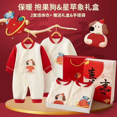 班杰威尔 婴儿夹棉连体衣冬季宝宝衣服 73cm 哈衣加厚抱果狗+加厚星苹象2件套装