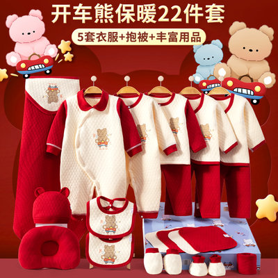 班杰威尔 新生儿礼盒婴儿衣服用品套装 B66cm 加厚开车熊红