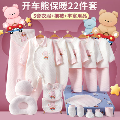 班杰威尔 新生儿礼盒婴儿衣服用品套装 59cm 加厚小宝宝粉