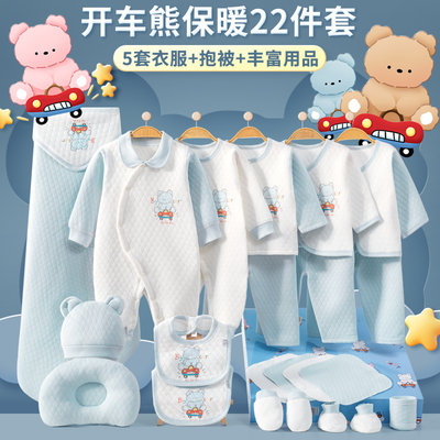 班杰威尔 新生儿礼盒婴儿衣服用品套装 C59cm 加厚开车熊蓝