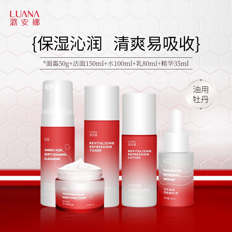 LUANA/潞安娜花萃水清爽/密润水乳套装 水100ml+乳80ml+精华35ml+面霜50g+洁面150ml