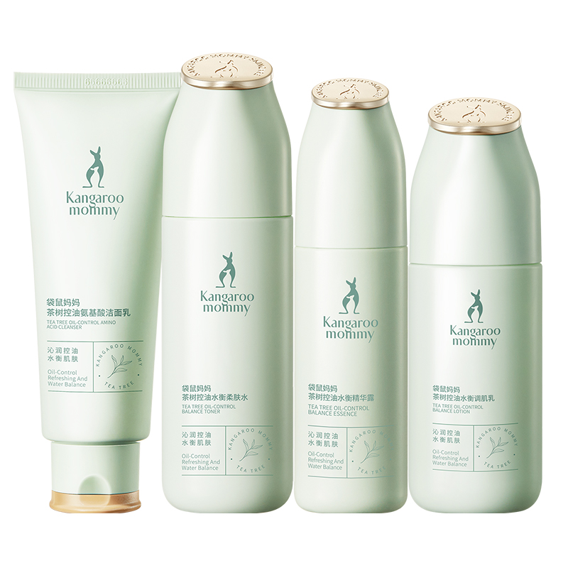 袋鼠妈妈准孕妇护肤品茶树控油套装洁面乳水乳补水保湿油皮专用化妆品送精华单支发货