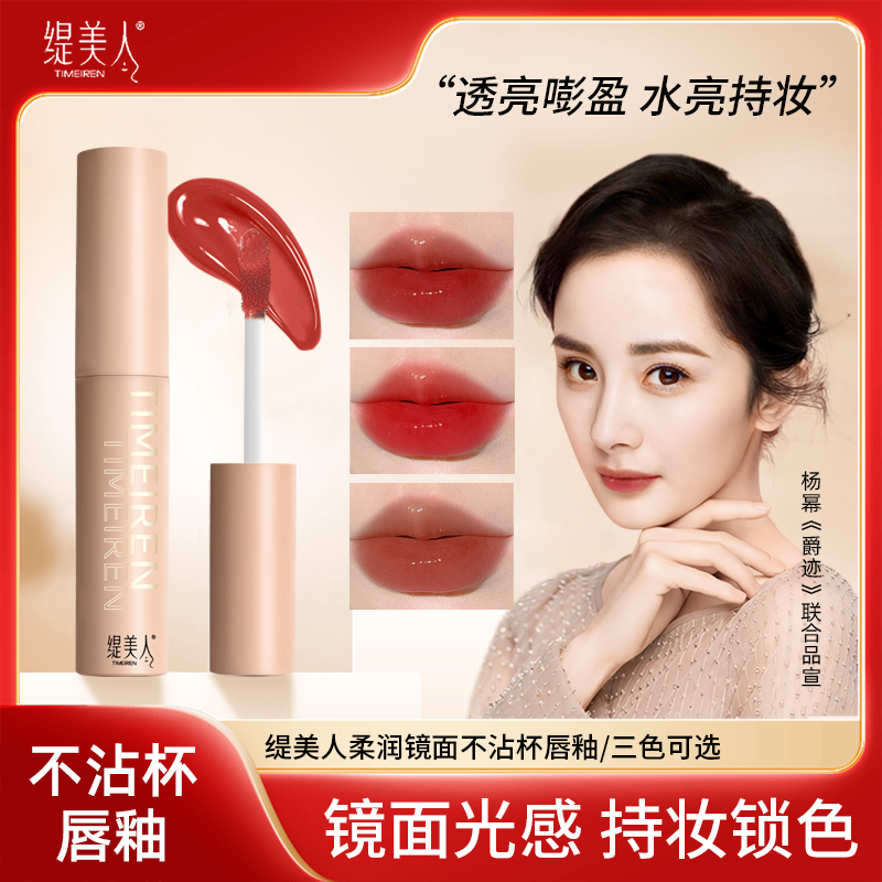 缇美人化妆品口红唇釉 镜面伪素颜不掉色不粘杯化妆品官网三色口红唇釉 柔润镜面不沾杯唇釉