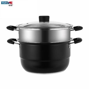 YisPot/易铂24cm德勒双层蒸锅-黑色YP-9040