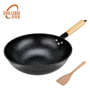 好来宝32cm无盖黑曜石麦饭石不粘炒锅HLB-JB002