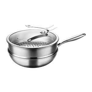 hanle/翰乐32cm双面屏316不锈钢炒锅带蒸笼HL-F11