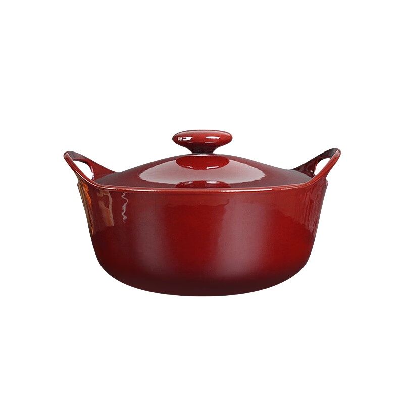 归.禾器 双耳珐琅炖锅(镜面红)22cm