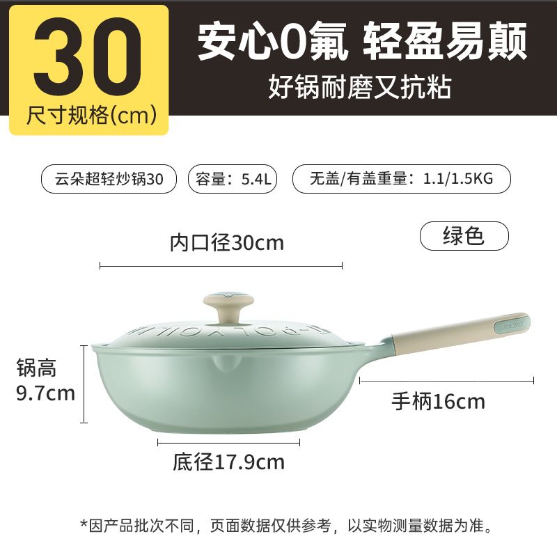 炊大皇 云朵超轻炒锅30CM绿色 CG30YL