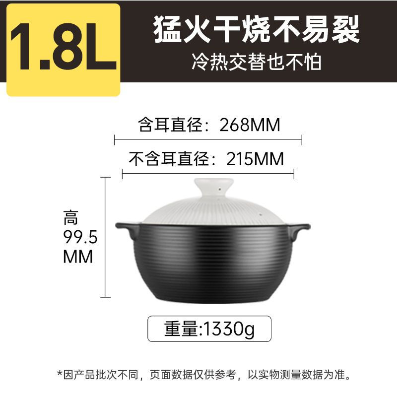 炊大皇享味煲TW18B 砂锅炖锅煲汤家用燃气煤气灶耐高温煲仔饭煲陶瓷锅白色1.8L