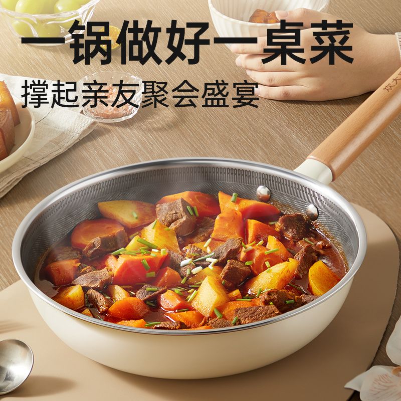 炊大皇 轻悦316L不锈钢炒锅32cm直径 CG32QY-7