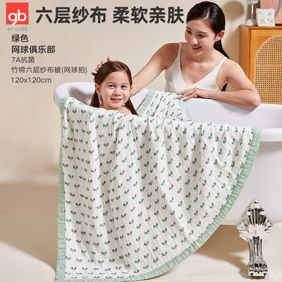 好孩子 网球俱乐部7A抗菌竹棉六层纱布被(网球拍) 绿