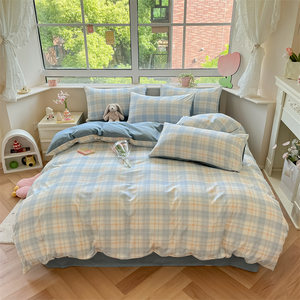 雅鹿蓝白小格印花床品全棉四件套200*230cm