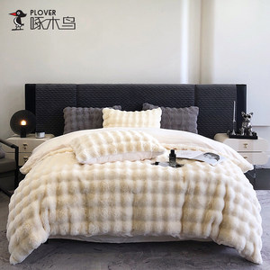 PLOVER/啄木鸟新款兔绒床品四件套-典雅白200*230cm±5cm