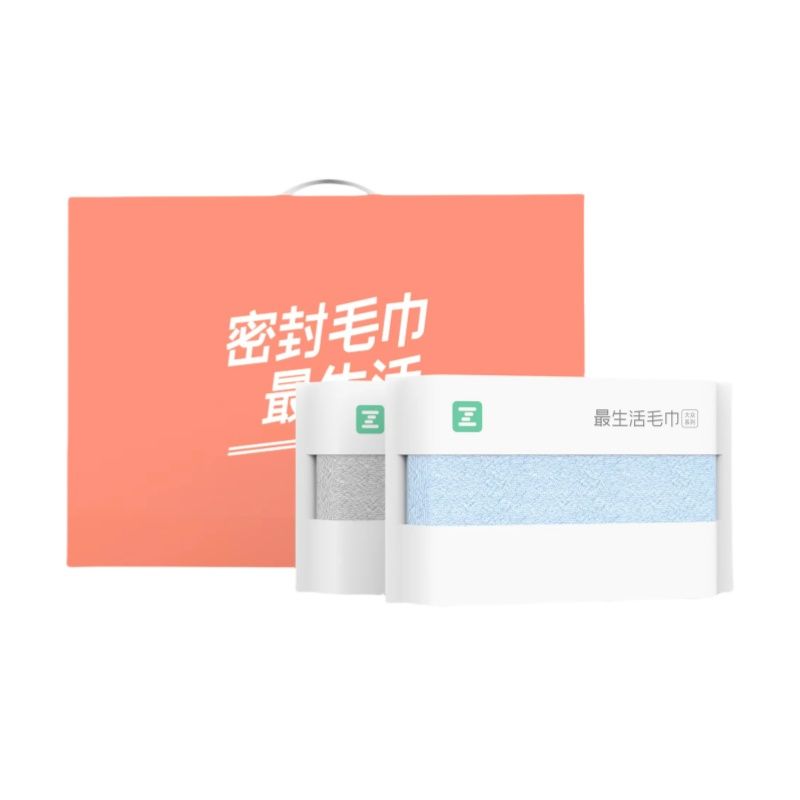 最生活 大众毛巾两条礼盒A-1120-2浅蓝+浅灰