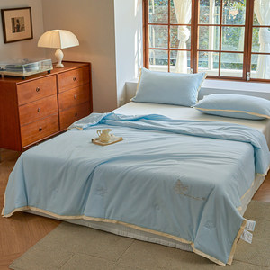 恒源祥彩羊山茶花之恋浅蓝绣花水洗夏被200*230cm 1500g
