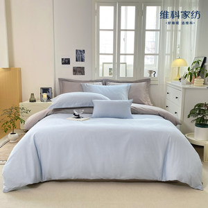 VEKEN/维科家纺全棉A类素色撞色款床品四件套-蓝灰200*230cm