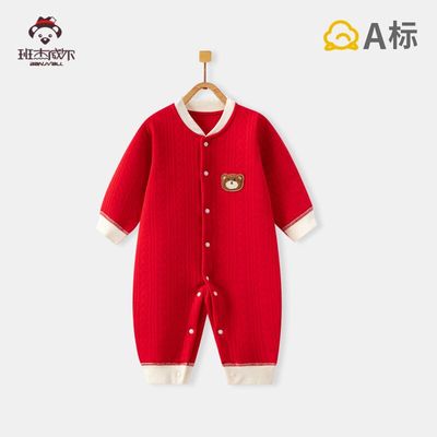 班杰威尔 婴儿纯棉无骨宝宝哈衣 73cm 加厚松饼熊