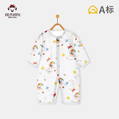 班杰威尔 婴儿纯棉无骨宝宝哈衣 90cm 超薄长袖沙滩熊