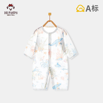 班杰威尔 婴儿纯棉无骨宝宝哈衣 90cm 超薄长袖海蓝鲸