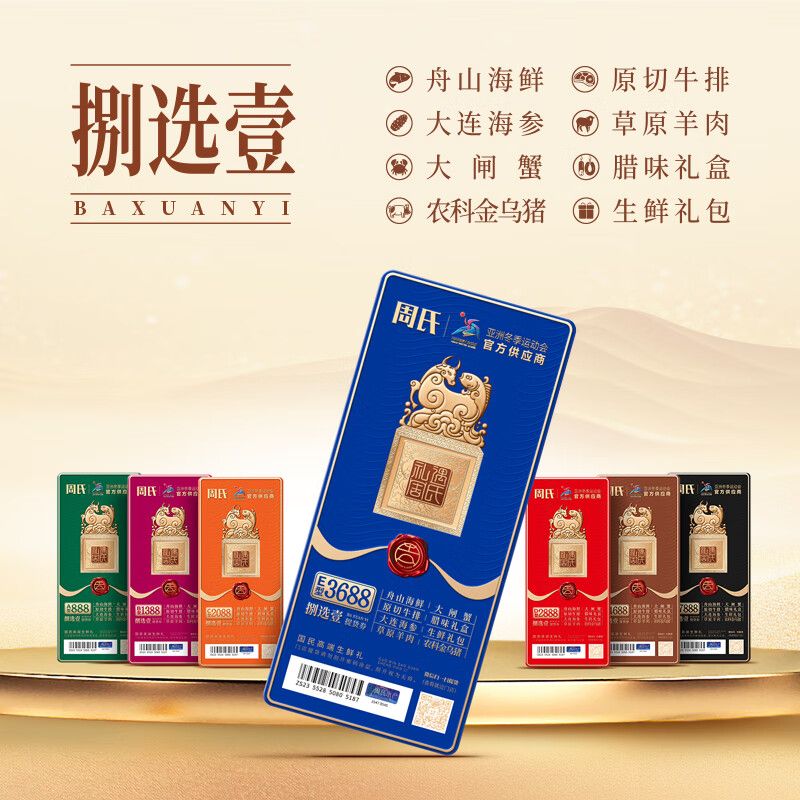 周氏 国鲜八选一年货礼盒多选券 顺丰 全国通用 长期有效 (如要发实物 请备注)