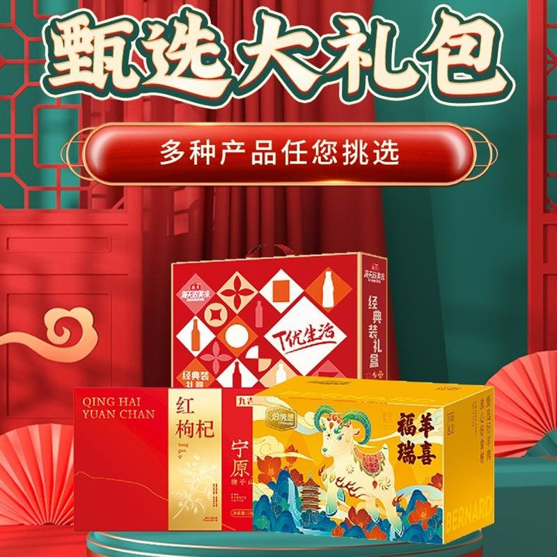 甄选大礼包年货礼盒 伯纳德羊肉礼盒 宁夏枸杞礼盒海天调味礼盒组合