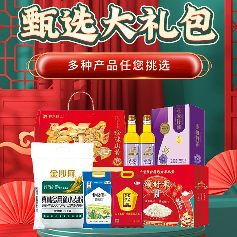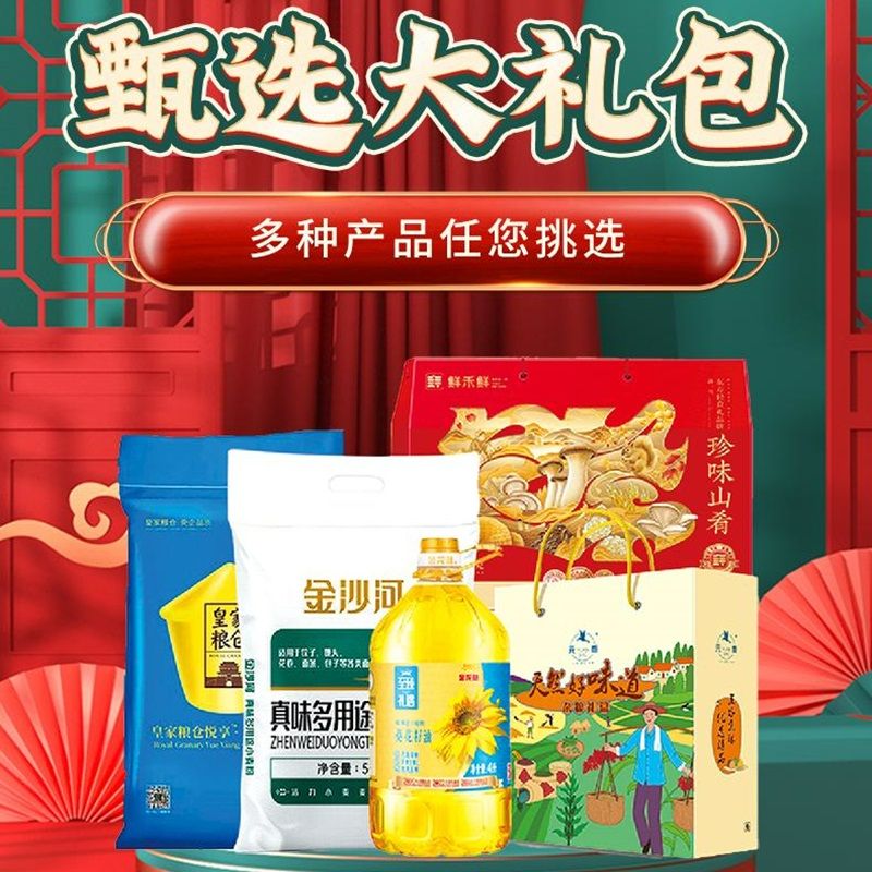 甄选大礼包年货礼盒 金沙河面粉中粮大米礼盒福临门亚麻籽油鲜禾鲜山珍礼盒组合
