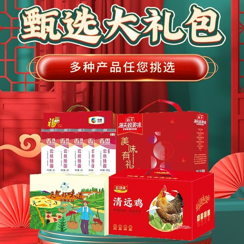 甄选大礼包年货礼盒清远鸡礼盒 元黍杂粮礼盒 海天调味礼盒 中粮挂面礼盒组合