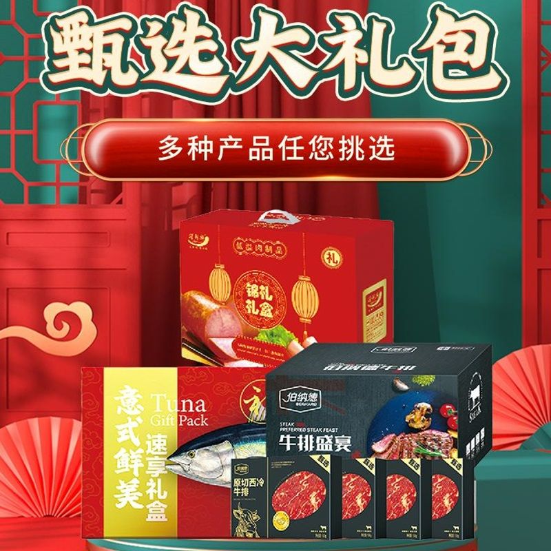 甄选年货大礼包 伯纳德精品牛排 得利斯低温火腿礼盒小熊驾到意面速享礼盒