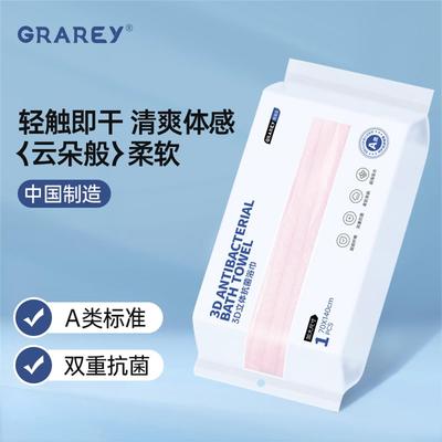 格瑞亚 (GRAREY)3D立体抗菌浴巾 粉色1条+灰色1条