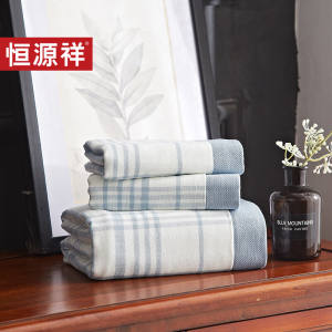 【顺丰配送】恒源祥水墨亲肤棉毛巾浴巾三件套-蓝白格