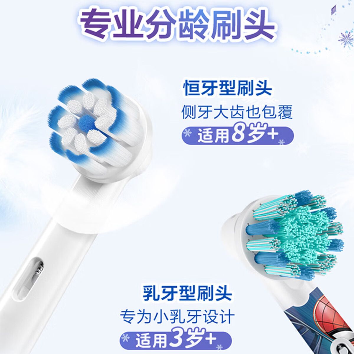 欧乐B 儿童牙刷电动牙刷头EB10s-3K 迷你圆头轻柔按摩牙龈 适配欧乐b多款儿童牙刷