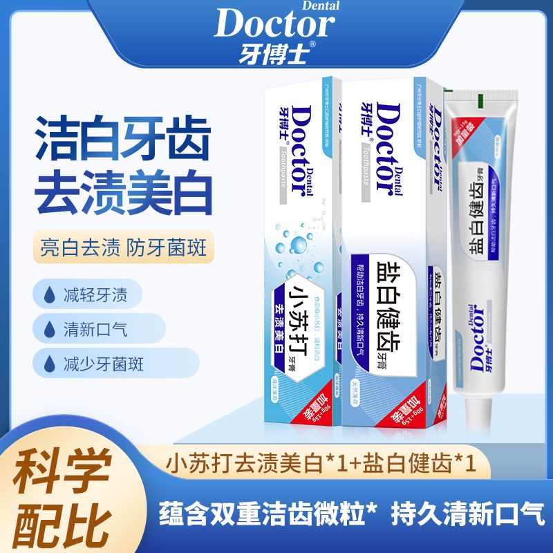 牙博士洁白健齿2支装(小苏打去渍美白105g+盐白健齿105g)