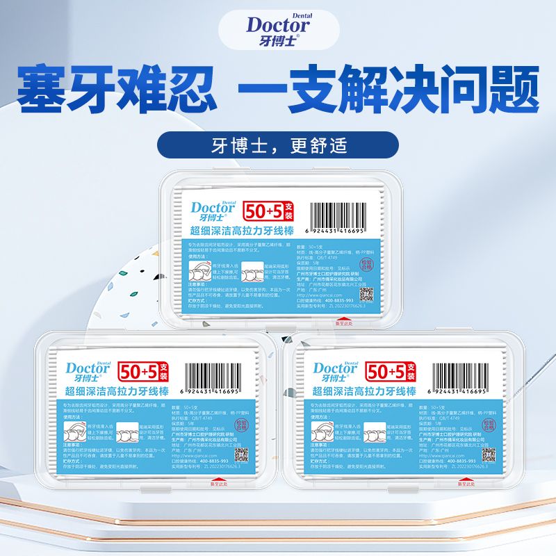 牙博士细滑圆线牙线棒55支清洁齿缝牙签牙线棒