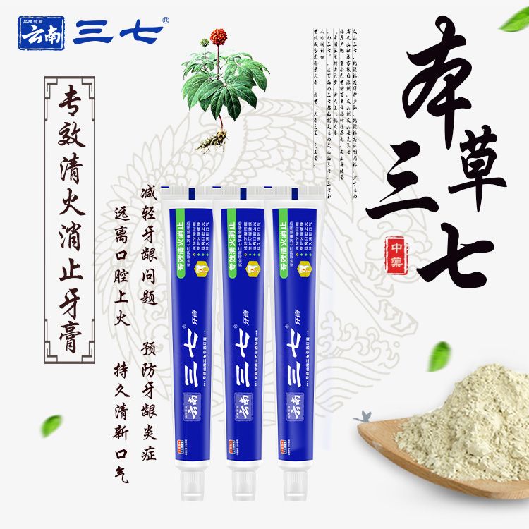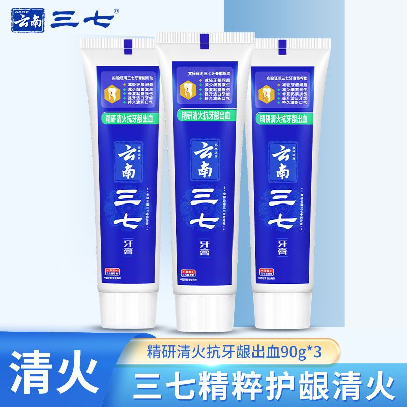 云南三七 精研清火抗牙龈出血牙膏90g*3只