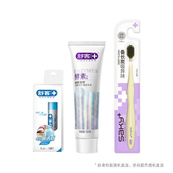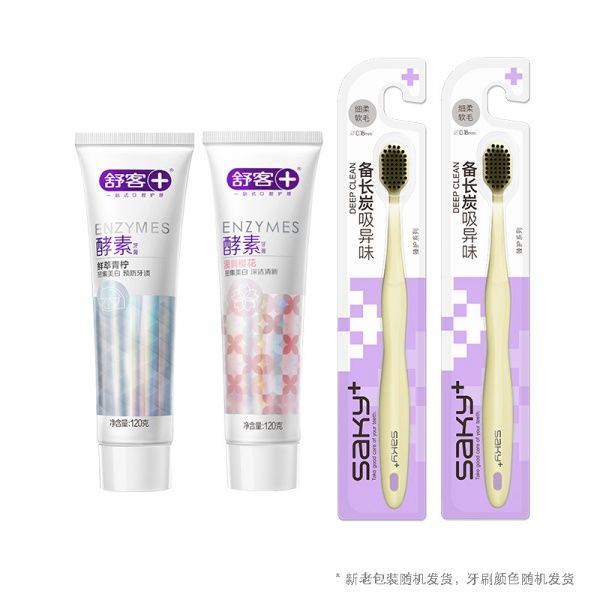 舒客 臻护个人口腔护理组 ZHS-GR32 酵素牙膏120g+红花清火牙膏120g+小苏打牙膏105g+随机软毛牙刷*2
