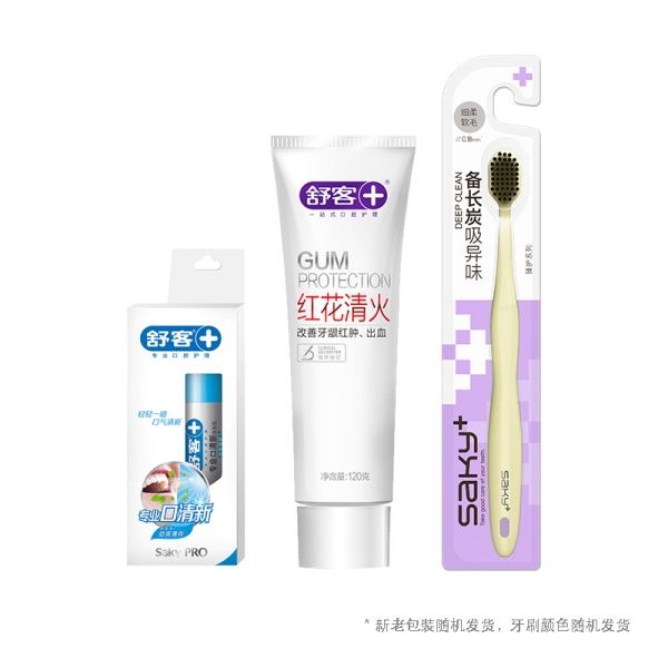 舒客 沁爽系列口腔护理套 ZHS-HH21 红花清火牙膏120g+牙刷单支装+口腔清喷雾18ml
