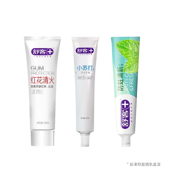 舒客 沁爽系列口腔护理套 ZHS-FH30 红花清火牙膏120g+沁爽防蛀清牙膏145g+小苏打牙膏洁白细护牙膏105g