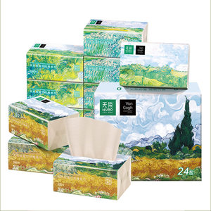 wuro/无染油画系列抑菌竹纤维纸面巾整箱3层110抽*24包WR058