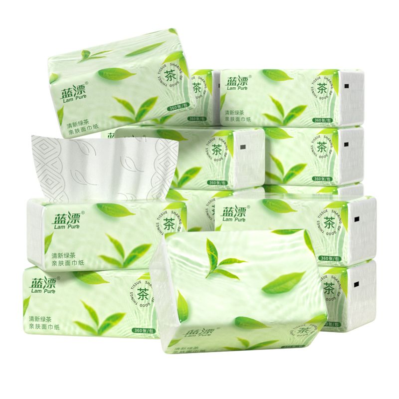 蓝漂清新绿茶味面巾纸LP-41383白色抽纸14包-绿茶香