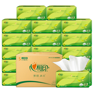心相印茶语丝享系列茶叶压花无香型S码抽纸整箱3层120抽*18包
