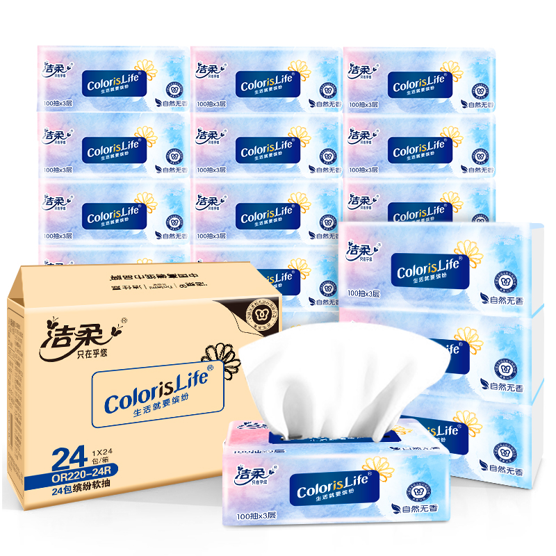 洁柔牌纸面巾(缤纷软抽)100抽3层(单包)OR220-24R